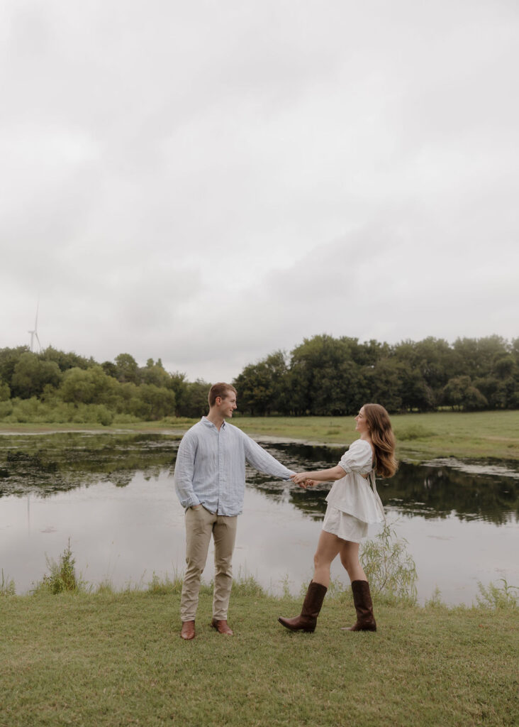 Her only request was that the photos feel simple, unposed, a little playful. So we leaned into the quiet parts of Oklahoma: the fields, the hay bales, and the pond that mirrored the sky.
