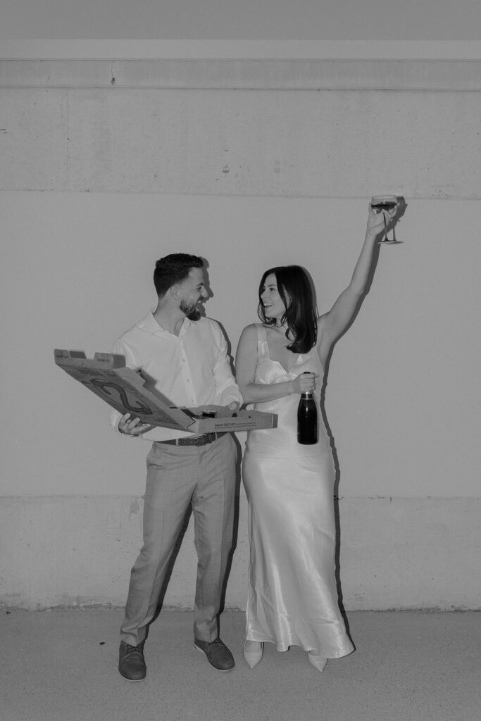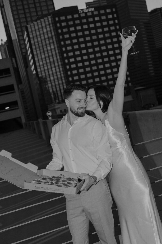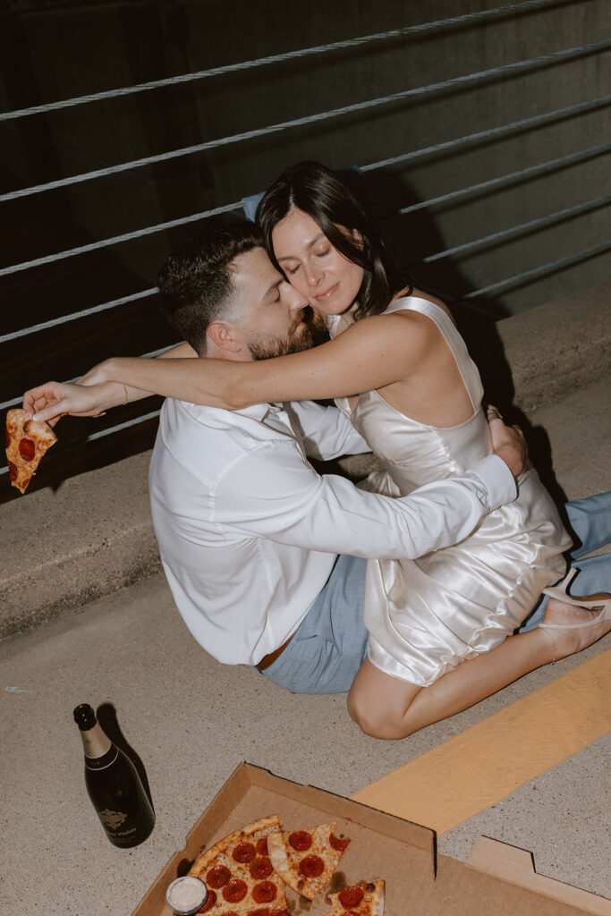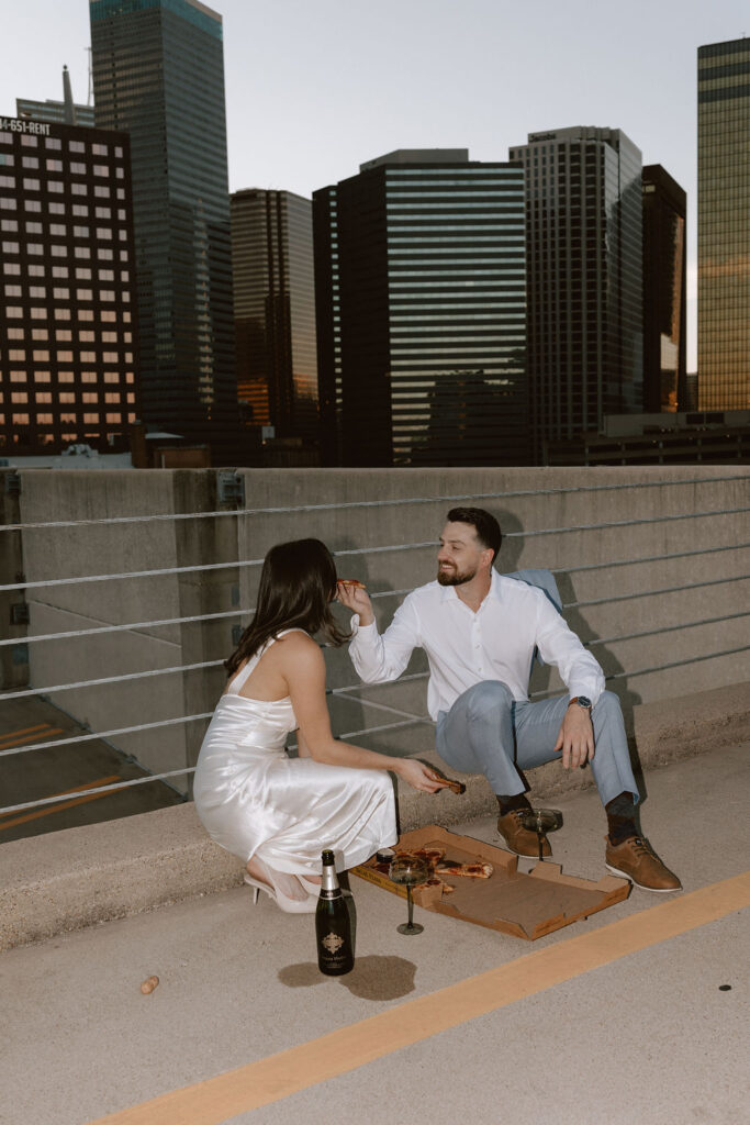 We wandered a bit, then we made our way up to a rooftop parking lot, because nothing says romance like concrete and skyline views, obviously. But really, it’s the contrast that makes it work. They brought pizza and champagne, which felt very on-brand for people who understand that the best moments don’t need to be complicated.