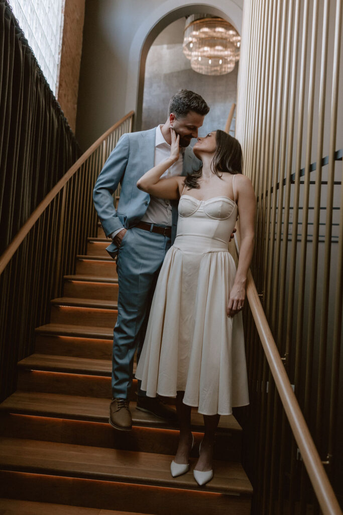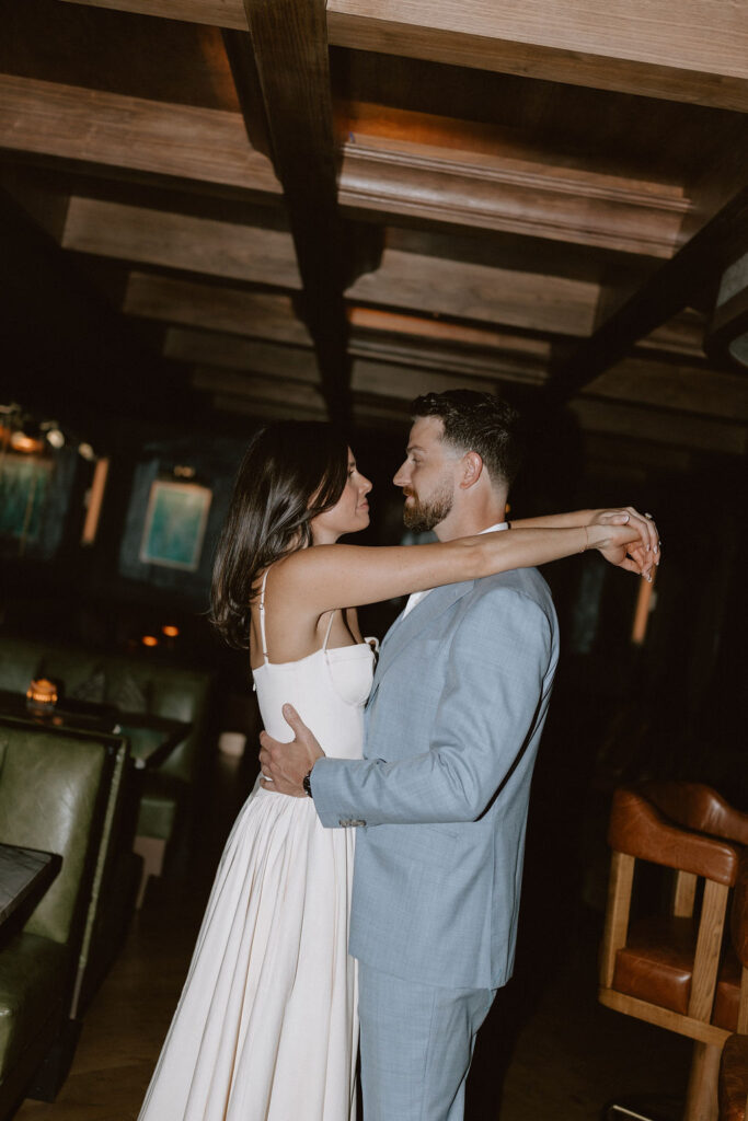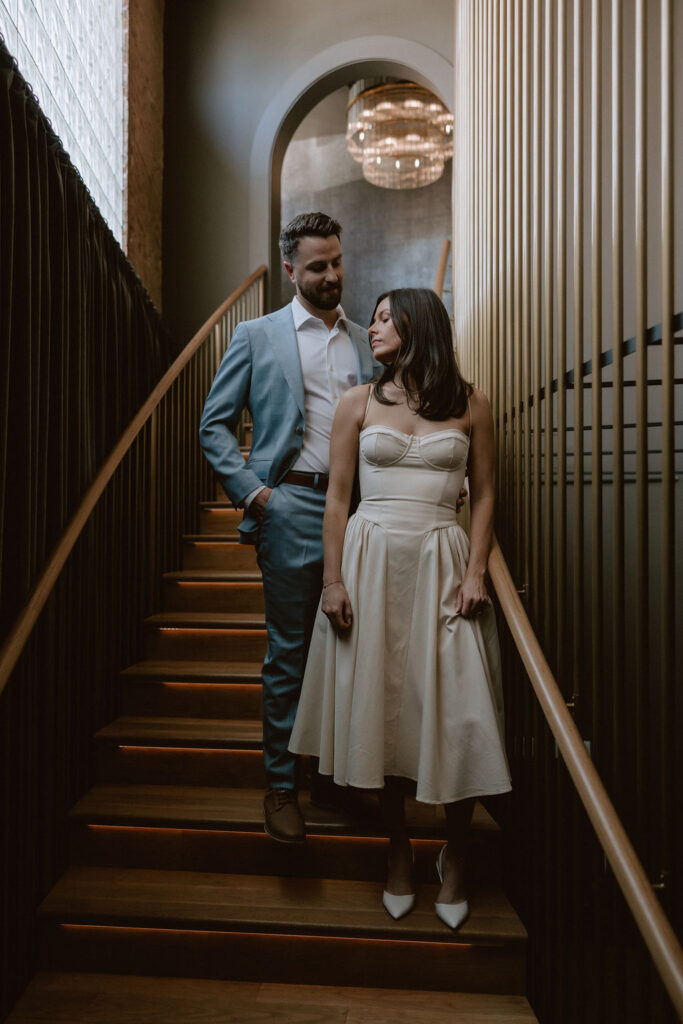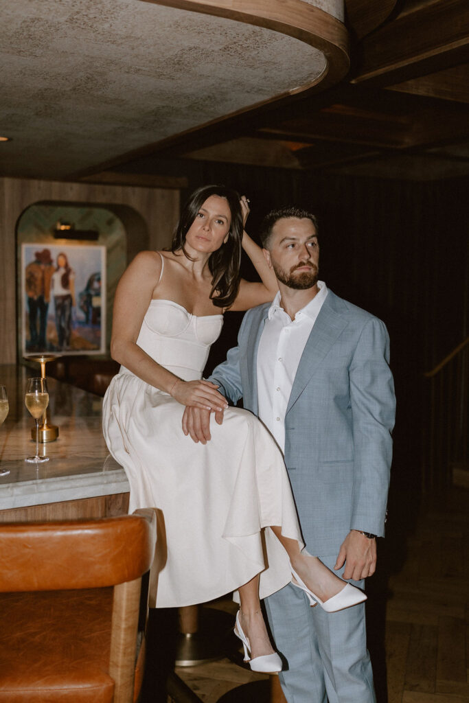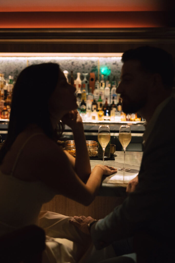 Once we were there, everything settled into place naturally. There’s something about a darker environment that invites people to lean closer, speak a little quieter, and exist in their own little pocket of the world. Alex wanted romantic, but also a little editorial. And those two things don’t have to compete. When you’re paying attention, you start to see how naturally they overlap. Ginger’s didn’t need us to do much. It just asked us to slow down. And thankfully, Alex was already the kind of person who knew how to do that.